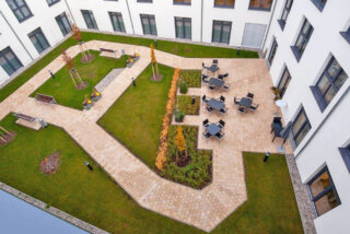 Pflasterarbeiten, Anlegen von Rasenflächen und Bepflanzungen, Bau von Spielplätzen und Zaunanlagen