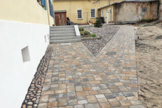 Pflasterarbeiten, Anlegen von Rasenflächen und Bepflanzungen, Bau von Spielplätzen und Zaunanlagen